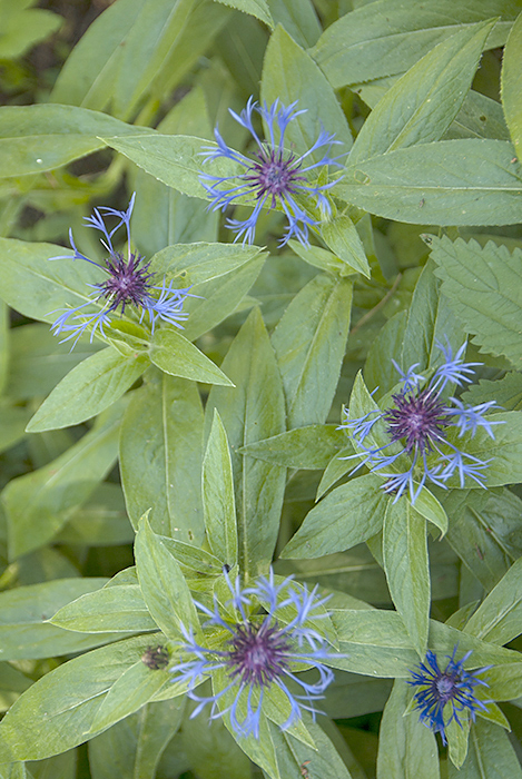 Noin 70 cm kasvava vanha koristekasvi. Ehytlaitaiset, harmahtavanvihreät, kapeakärkiset lehdet. Kukkii keskikesällä ruiskaunokkia muistuttavin sinisin kukin, joissa tumman sinipunainen keskus.